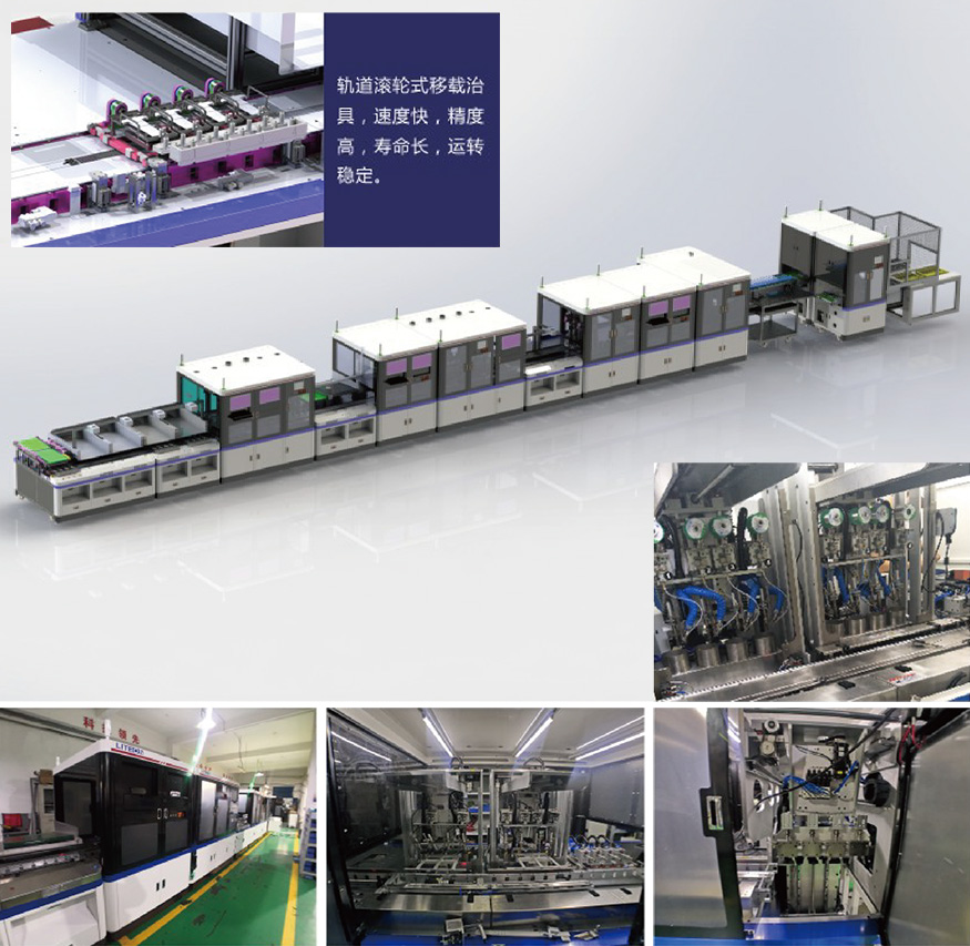 主要特點:治具采用輪組軌道配合,高速高精度定位,精度+0.05mm,提高產(chǎn)能。